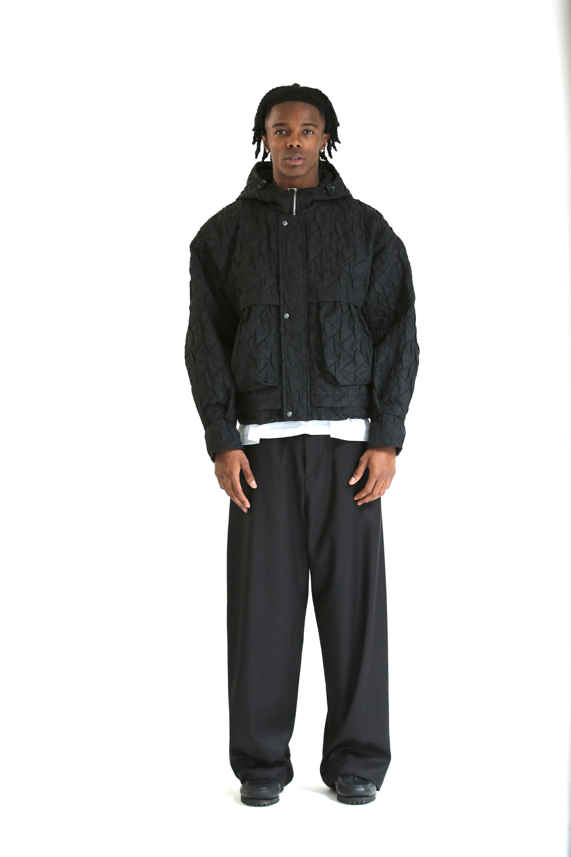 Bomber crop trapuntato nero